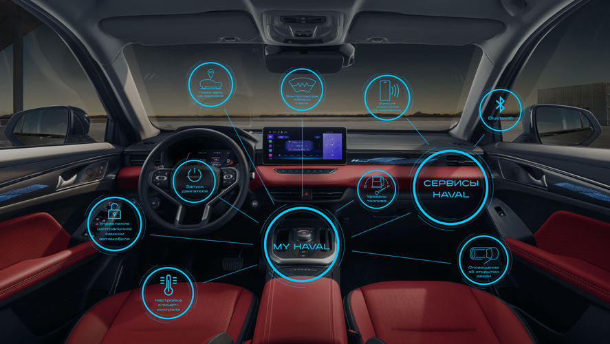 Вместе с автомобилем HAVAL¹ вы получаете целый набор интеллектуальных технологий² по дистанционному управлению и контролю статуса автомобиля, которые сделают каждое путешествие еще комфортнее: