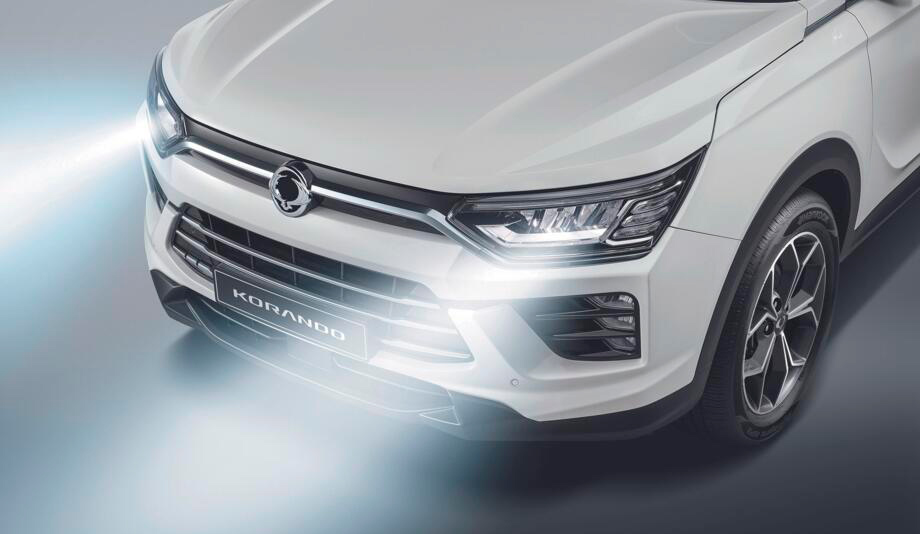 Спортивный силуэт кузова подчеркивает решительный характер KGM Korando. Радиаторная решетка гармонично перетекает в линии бампера и капота, что создает цельный и уверенный образ на дороге.
