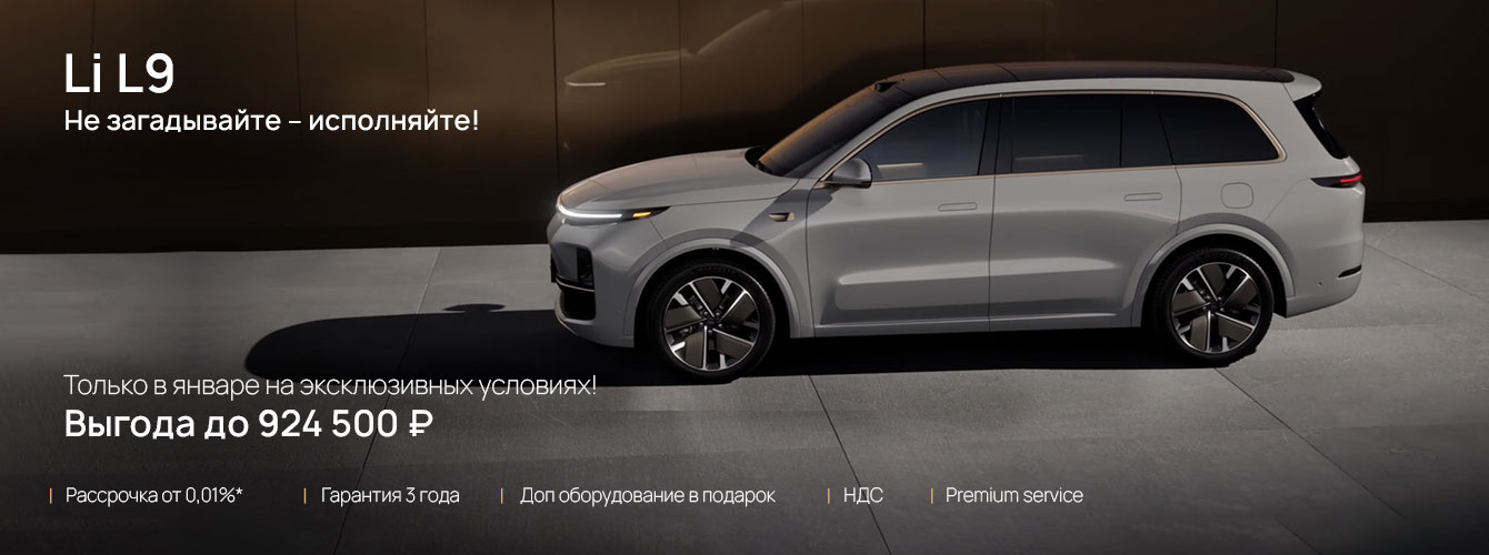 **Предложения по кредиту действуют в рамках программы «Li Auto Finance» и распространяется на автомобили Li L6, L7 и L9 2024 и 2025 года выпуска при покупке в кредит в АО «ОТП Банк», в АО «АЛЬФА БАНК» и ПАО «Сбербанк».