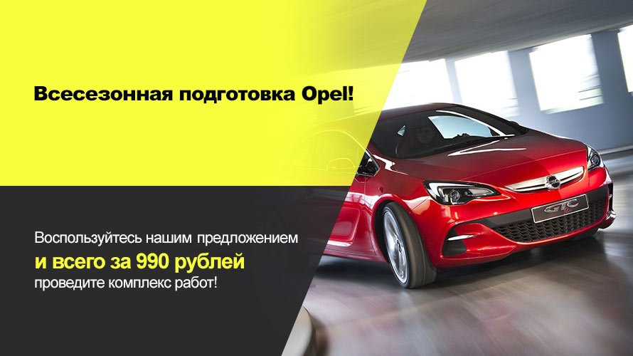 Воспользуйтесь нашим предложением для Opel старше 3-х лет всего за 990 рублей* и проведите комплекс работ, в который входит: